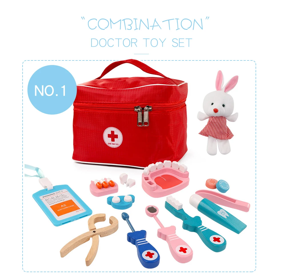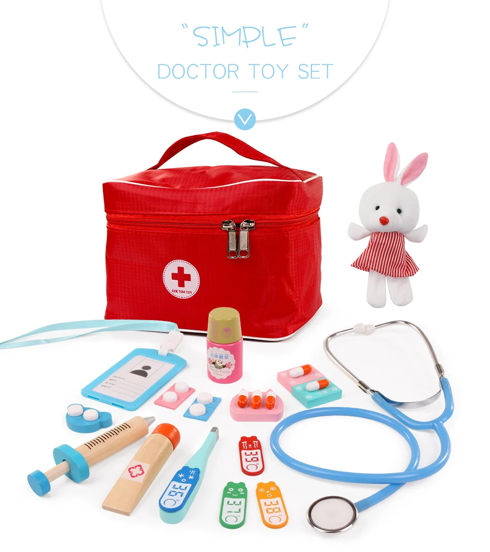Baby Wooden Pretend Play Doctor Educationa Toys for Children Medical Simulation Medicine Chest Set for Kids Interest Development