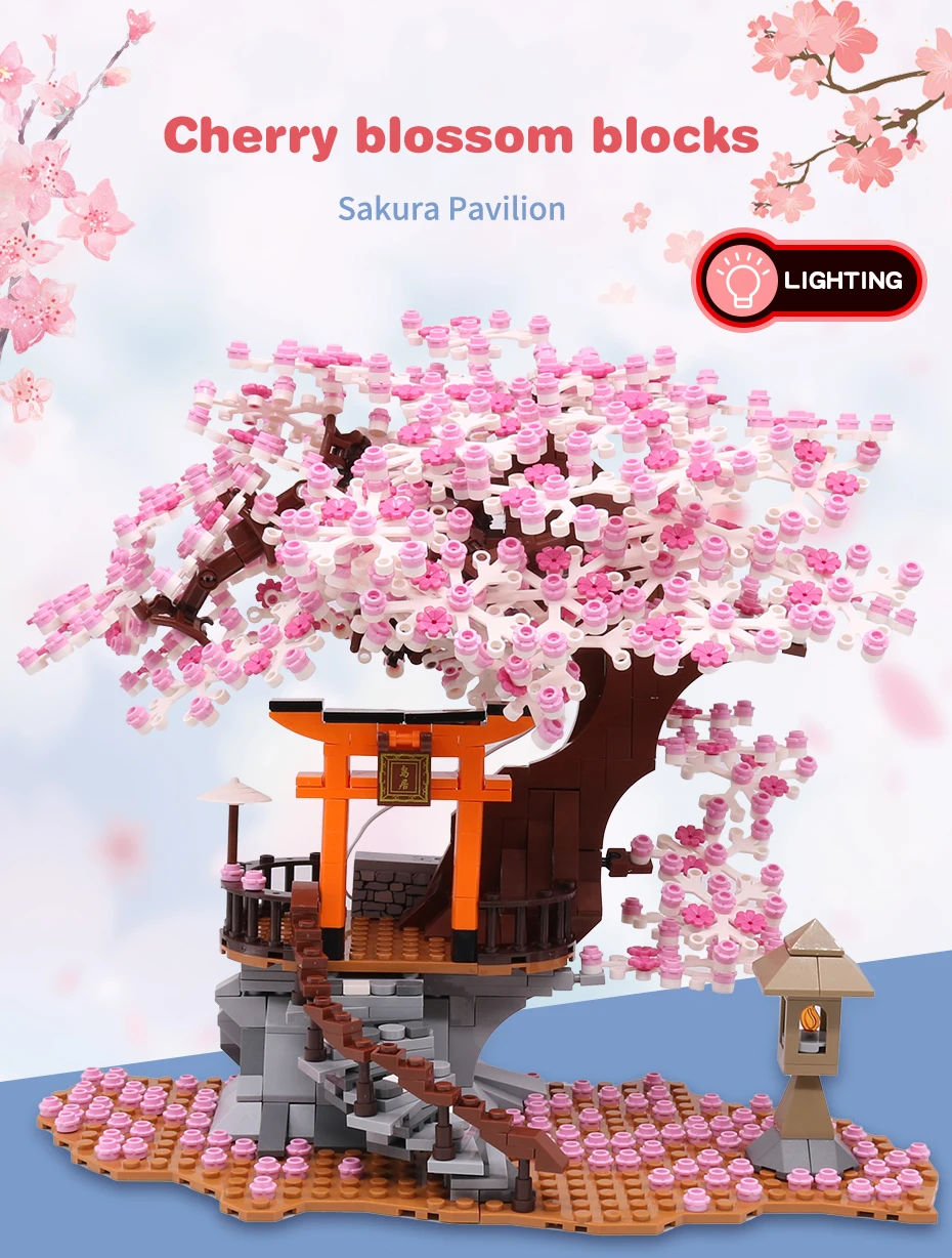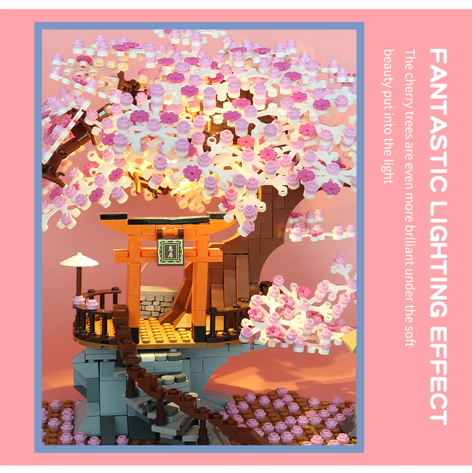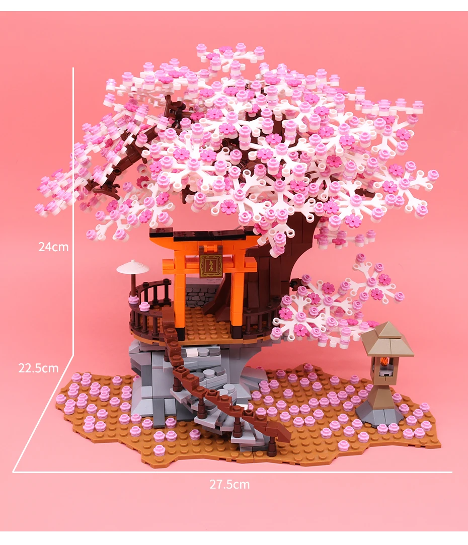 Classic Block City Street View Idea Sakura Inari Shrine Bricks Friends Cherry Blossom House Tree Building Blocks Toys Kids Gift