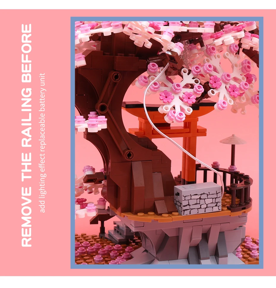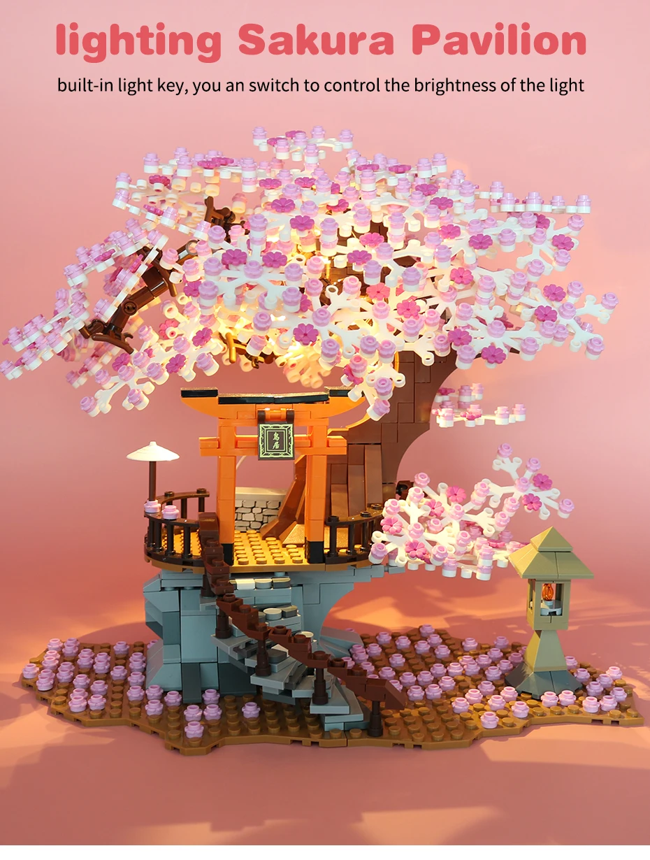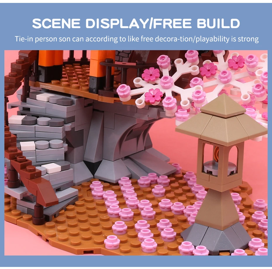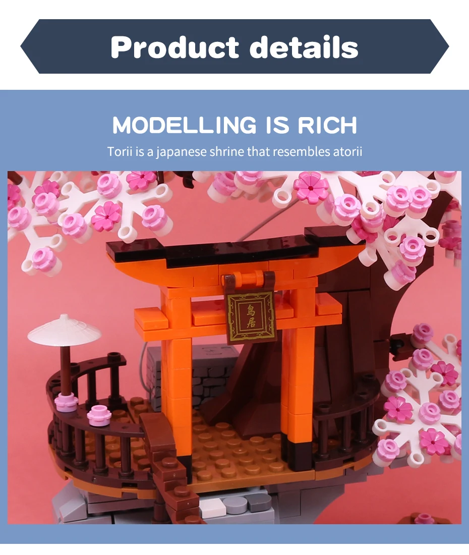 Classic Block City Street View Idea Sakura Inari Shrine Bricks Friends Cherry Blossom House Tree Building Blocks Toys Kids Gift
